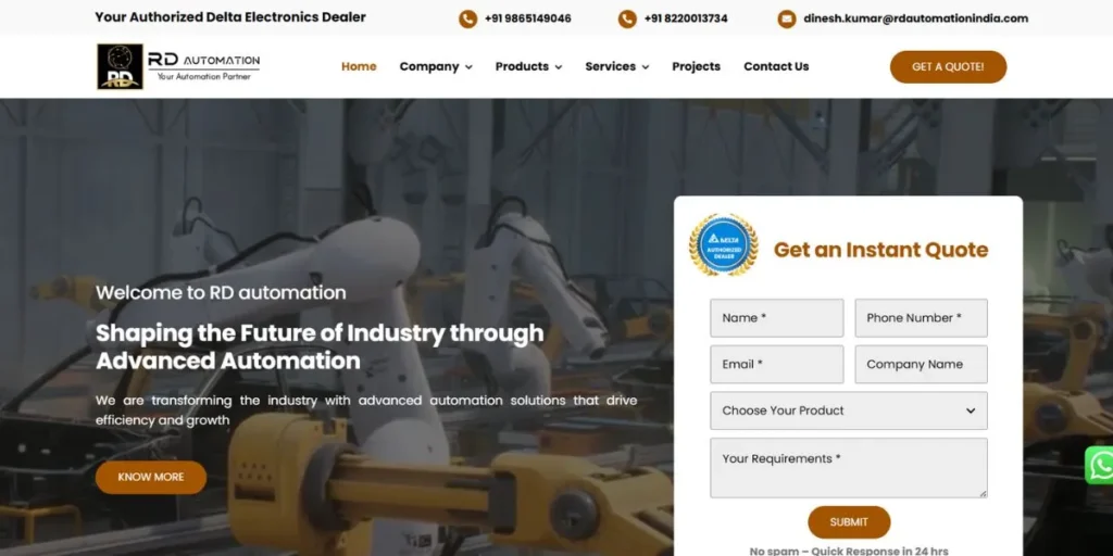RD Automation is a reputable Coimbatore-based industrial automation firm with 13 years of experience in the smart provision of solutions in every industry. Being a registered distributor to Delta Electronics, they supply real products such as VFD AC drives, PLCs, HMIs, servo motors, as well as full robotics systems.