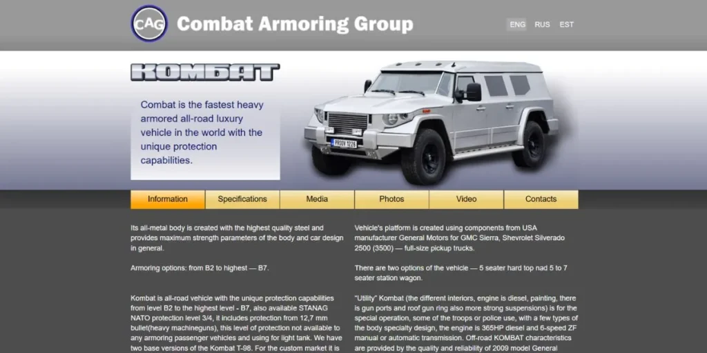 | 5 | Combat Armoring Group | 1998 | Electric & armored vehicles | Limited-volume EV producer | Specialized armored and electric vehicles |