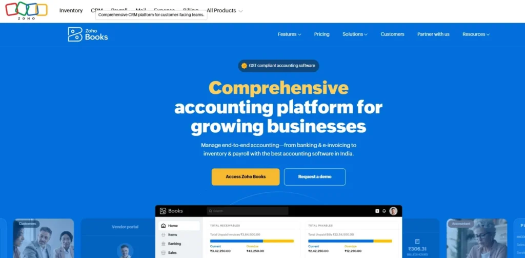 | Zoho Books | Cost-conscious, Zoho users | Free plan, GST/VAT compliance | Free / $15/mo |