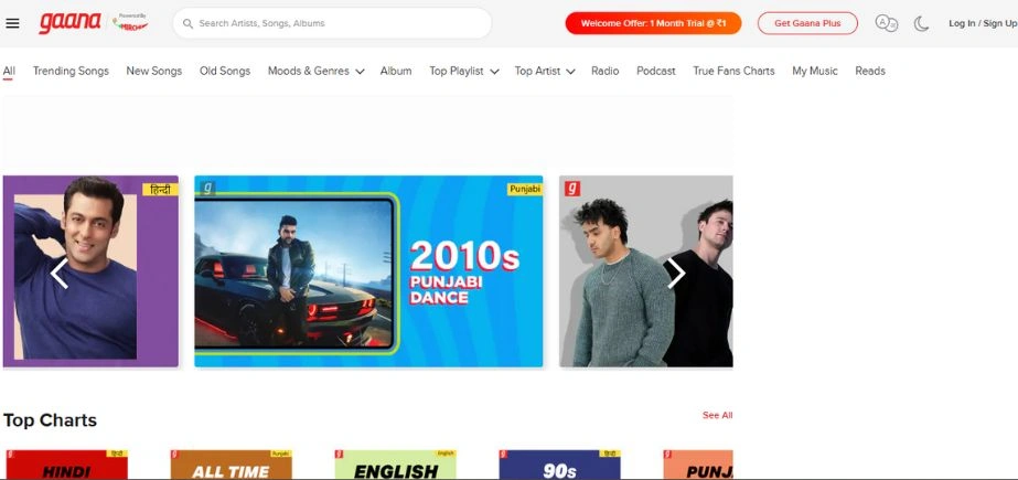 Website: https://gaana.com/
