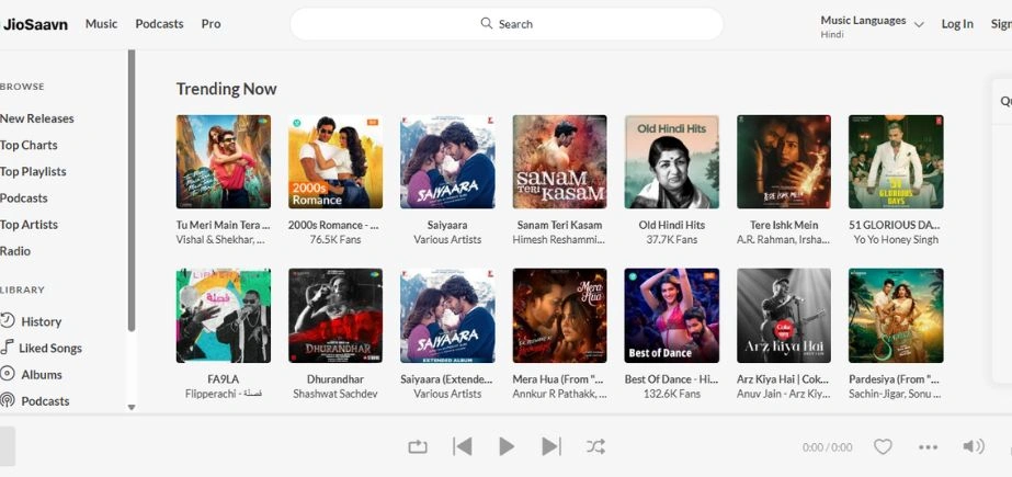JioSaavn came up as a result of a merger between the homegrown Saavn and the JioMusic, which formed a powerhouse created specifically to serve the market of India. The site has strength in terms of the unparalleled regional content in 15 languages, using Punjabi bhangra to Tamil film songs.