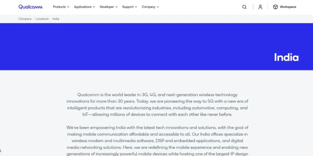 Qualcomm HSR Layout Centre is an organisation that focuses on mobile device innovation, semiconductor design, and wireless technologies. This facility is staffed with circa 540 professionals and is part of Qualcomm’s research in next-generation wireless communication technology. Qualcomm looks to expand operations in India with a global revenue of 38.9 billion in FY2026. The HSR office focuses on developing chipsets and mobile platform technologies for smartphones.