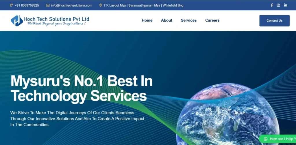 The company is well known in the locality due to its pleasant and supportive culture. Its specialization is web development and the creation of mobile apps, with its head office being situated at central Mysore. As one of the top IT companies in Mysore, Hoch Tech offers internship programs that give current students real coding experience before graduation.