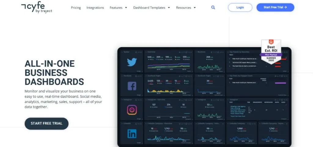 | Cyfe | 4.2/5 | All-in-one dashboard for multiple platforms |